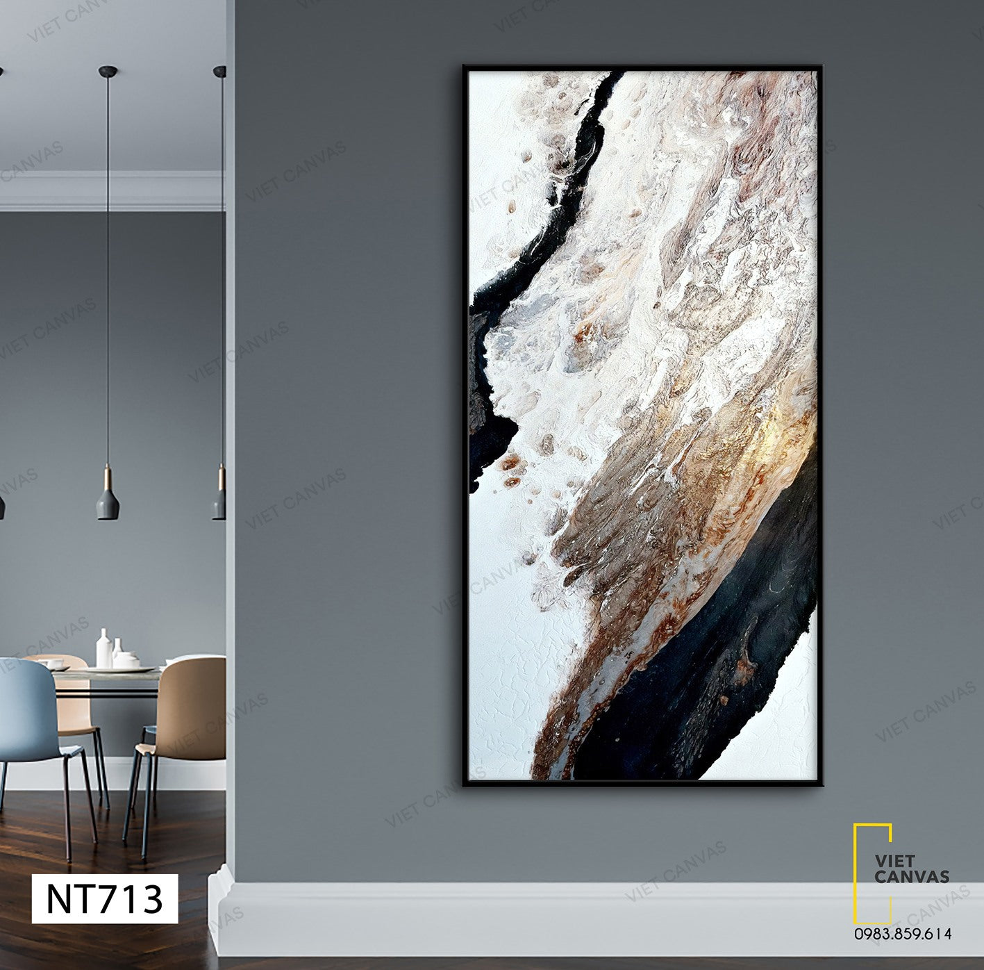 Hai màu đen trắng được nhắc đến là hai màu thuần tuý và tự nhiên nhất, nên khi mua tranh treo tường trừu tượng với hai gam màu đen trắng, không gian nhà hàng bạn cũng sẽ trở nên rộng và thoáng mát hơn bao giờ hết. Người chủ nhà hàng có thể thoả thích trang trí không gian theo ý muốn của mình hoặc thị hiếu của khách hàng chỉ với việc mua tranh treo tường trừu tượng đen trắng như thế này.